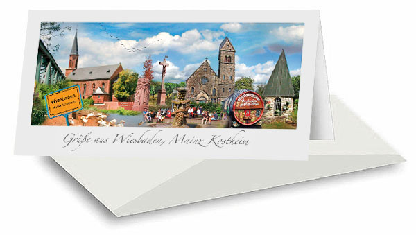 | Passend zur Mainz-Kostheim Tasse die Klappkarte mit dem Tassenmotiv und Umschlag in Folienhülle. Stück 2,95 € inkl MwSt. |