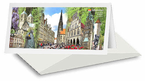 | Passend zur Münster Tasse die Klappkarte mit dem Tassenmotiv und Umschlag in Folienhülle. Stück 2,95 € inkl MwSt. |