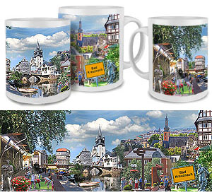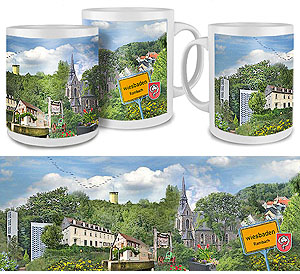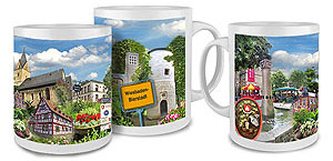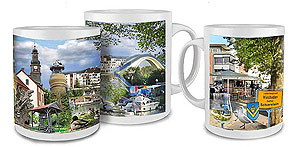 Rambach Tasse | Fototasse Wiesbaden-Rambach mit einer Collage Rambach Motiven in brillanter Fotoqualität. Ein Gastgeschenk mit großem Erinnerungswert. Material: Keramik, spülmaschinenfest, Inhalt: 0.34 l, Höhe: 95 mm, Ø 82 mm Stück 14,50 € inkl. MwSt. |