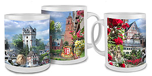Sonnenberg Tasse | Fototasse Wiesbaden-Sonnenberg mit einer Collage Sonnenberger Motiven in brillanter Fotoqualität. Ein Gastgeschenk mit großem Erinnerungswert. Material: Keramik, spülmaschinenfest, Inhalt: 0.34 l, Höhe: 95 mm, Ø 82 mm Stück 14,50 € inkl. MwSt. |