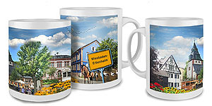 Frauenstein Tasse | Fototasse Wiesbaden-Frauenstein Motivcollage aus dem schönen Frauensteiner Ortsbild in brillanter Fotoqualität. Ein Gastgeschenk mit großem Erinnerungswert. Material: Keramik, spülmaschinenfest, Inhalt: 0.34 l, Höhe: 95 mm, Ø 82 mm Stück 14,50 € inkl. MwSt. |