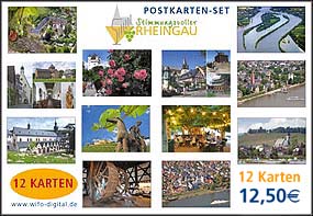 ![]() Postkarten-Set Rheingau, 12 hochwertige Ansichtskarten Preis 12,50 € inkl. MwSt. und Versand. |