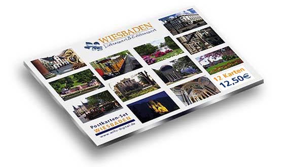 ![]() Postkarten-Set Wiesbaden 12 hochwertige Ansichtskarten Preis 12,50 € inkl. MwSt. und Versand. |